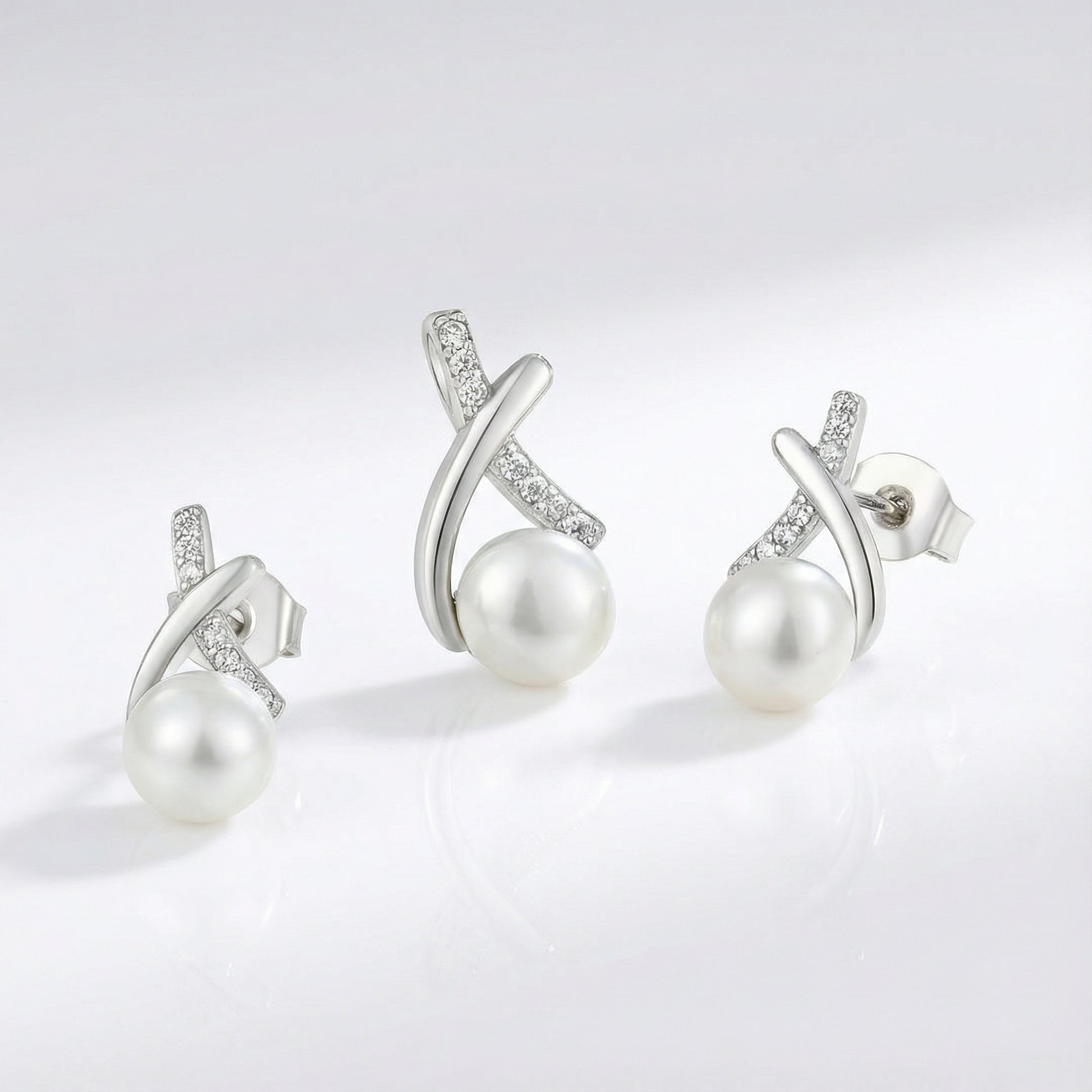 Indulge in timeless elegance with this jewelry set, crafted on a base of 925 sterling silver and finished with rhodium plating. Featuring radiant freshwater pearls and sparkling round brilliant cut zircon stones, the earrings and necklace embody refined beauty for every occasion.