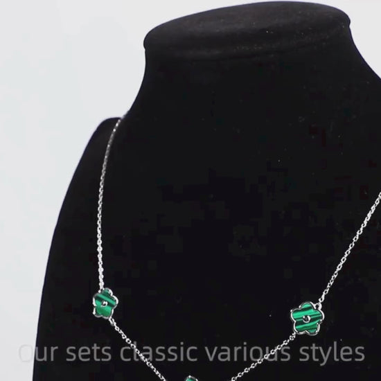 Elevate your style with this elegant sterling silver necklace, crafted from 925 silver and enhanced with a protective rhodium plating for extra shine and durability. The malachite flower pendant showcases its vibrant green tones and natural patterns, creating a piece that’s both timeless and eye-catching. Perfect for gifting or adding a touch of sophistication to everyday wear.