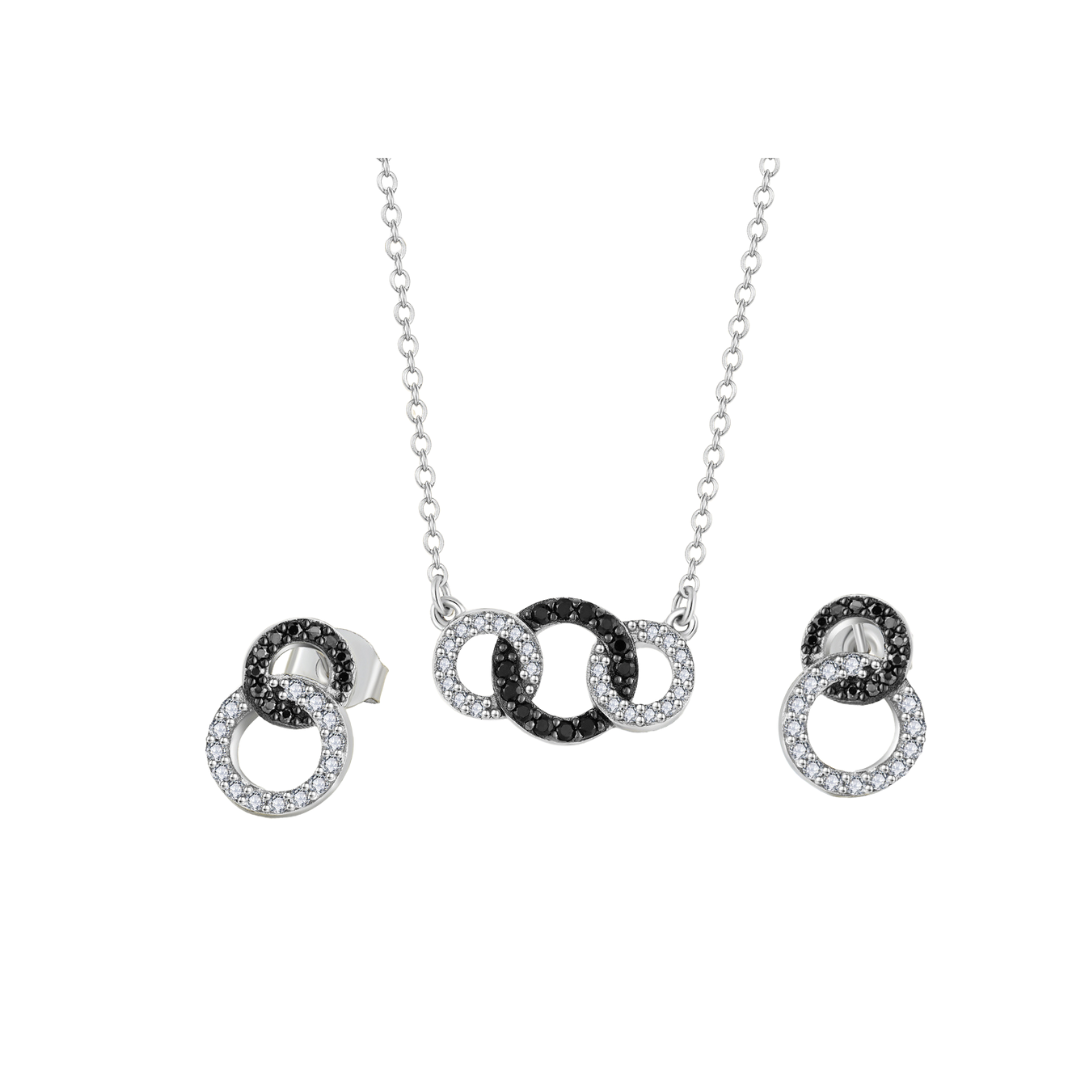 This 925 sterling silver jewelry set features a chic round circle design with sparkling cubic zirconia stones, finished in lasting rhodium plating. Complete with matching necklace and earrings, it’s perfect for anniversaries, engagements, weddings, parties, or as a timeless gift.