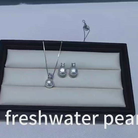 This elegant jewelry set showcases 9–10mm AAA-grade freshwater pearls in a classic white hue, beautifully claw-set in 925 sterling silver. Designed for timeless sophistication, it’s the perfect choice for weddings, engagements, anniversaries, or special occasions.